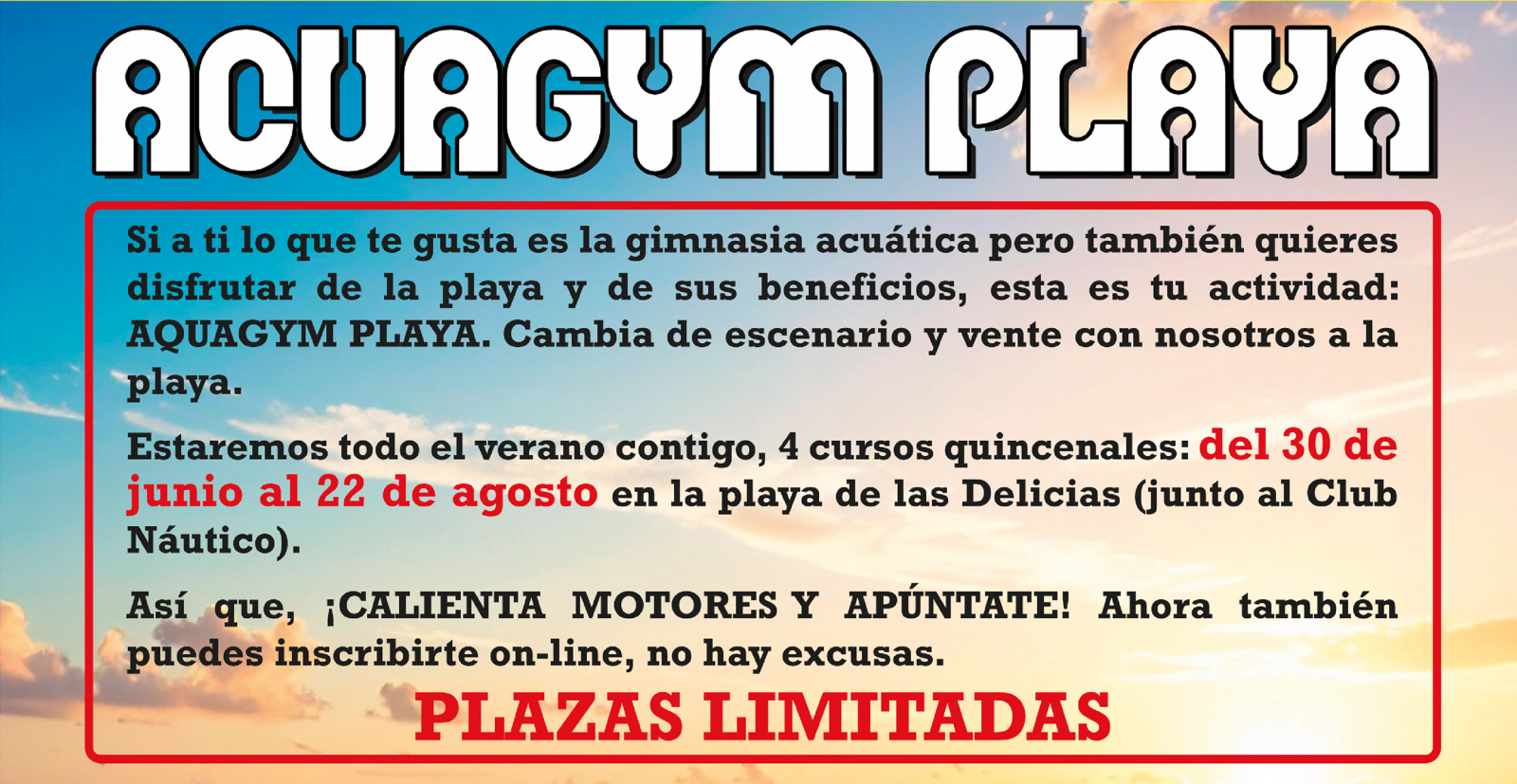 El calendario de apertura de inscripciones a actividades y cursos de verano 2026, así como el horario de inscripciones en web y en la oficina del polideportivo, se publicará en portada, en el menú de Juegos y deporte de verano y en el calendario de eventos. Revisa con frecuencia: las fechas se confirman cada temporada y pueden variar en función de calendario escolar y fiestas locales.